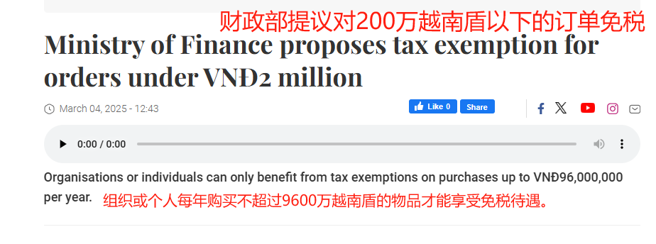 听起来挺大方?但仔细看细则就会发现“套路”,每个人或公司每年免税总额不能超过9600万越南盾(约3757美元)。