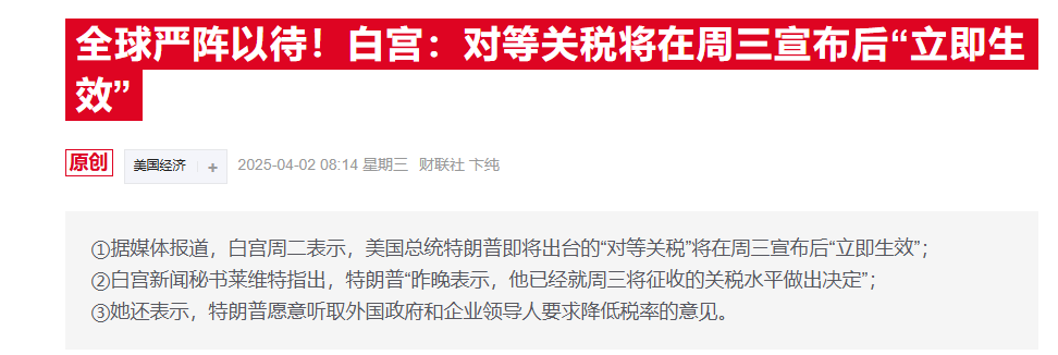 全球对等关税同步来袭