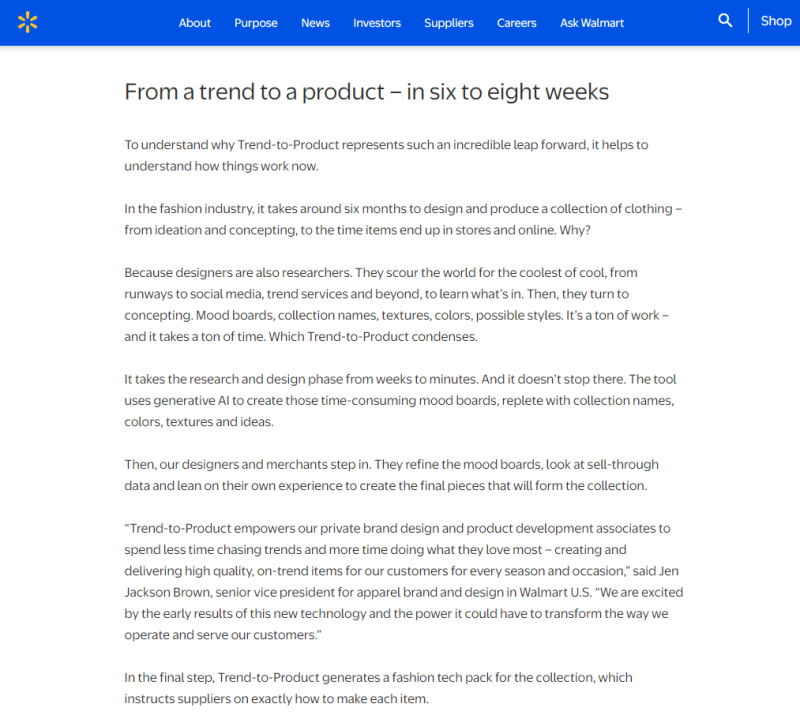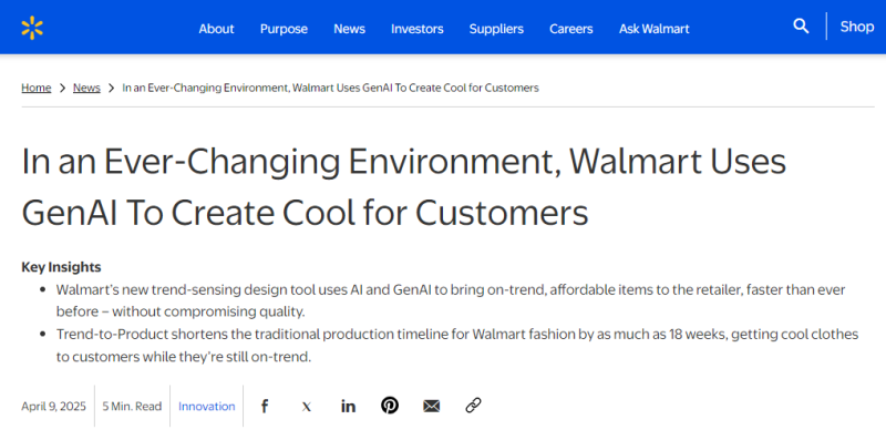近期,全球零售巨头沃尔玛公布了一项颠覆性技术创新,其耗时18个月自主研发的生成式AI工具“Trend-to-Product”(趋势到产品)正式投入应用。
