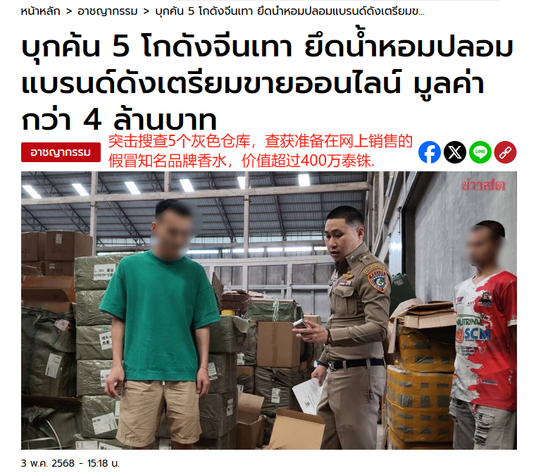 此次泰国警方的行动再次表明,跨境售假的风险正在加大。