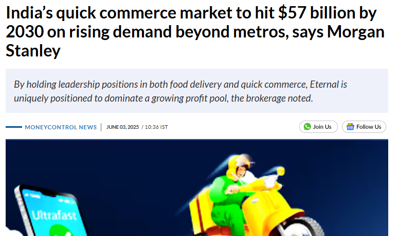 国际金融服务巨头摩根士丹利的一份最新报告,为印度火热的快商务市场再添一把猛火。报告显著调高了对该市场的预期,预测到2030年,印度快商务市场规模将飙升至惊人的570亿美元(约合人民币4093亿元),远高于之前预测的420亿美元。