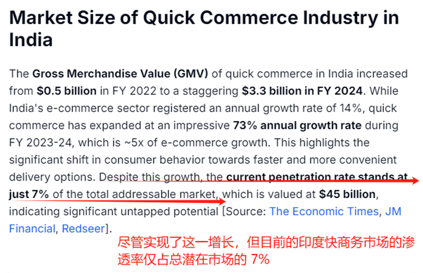 尽管增长势头迅猛,印度快商务市场的潜力远未充分释放。报告指出,目前该行业的渗透率仅占整个潜在市场的约7%。