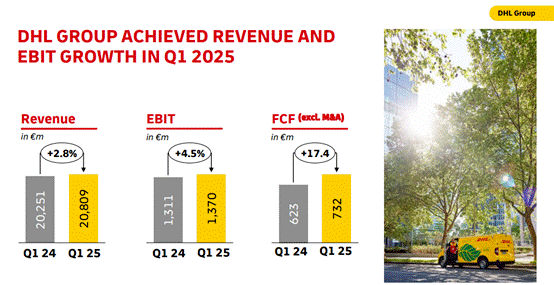 这些“组合拳”已开始显现成效。2024年第一季度,DHL实现营收208.1亿欧元,同比增长2.8%;息税前利润达到13.7亿欧元,同比增长4.5%;合并净利润同比增长6.2%至7.9亿欧元。Tobias Meyer将这一积极态势归功于“对成本和收益的严格管理”。