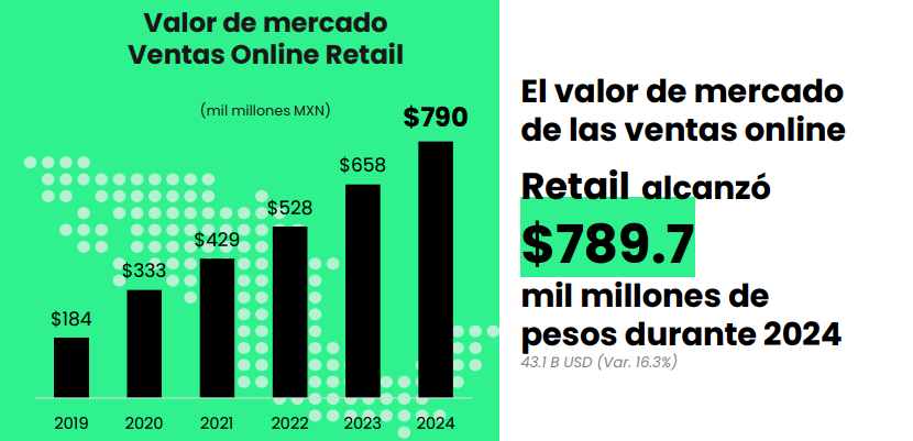 墨西哥作为拉美第二大经济体,坐拥上亿人口。伴随互联网普及率持续攀升,其电商市场展现出巨大潜能。据墨西哥在线销售协会(AMVO)的报告,2024年墨西哥的在线零售收入预计有望达到7897亿比索(约合391亿美元),与去年相比增长20%,这已经是该行业连续第六年保持两位数的高速增长态势!