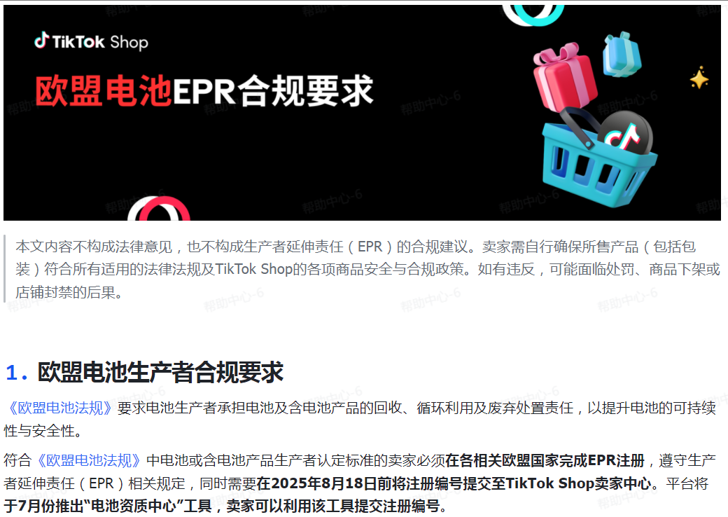 根据TikTok Shop发布的《欧盟电池新规合规指南》,其核心要求清晰且紧迫: