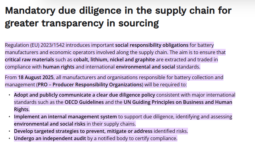 核心义务:卖家必须在2025年8月18日之前,完成在相应欧盟国家/地区的生产者责任延伸(EPR)制度下的电池法合规注册。