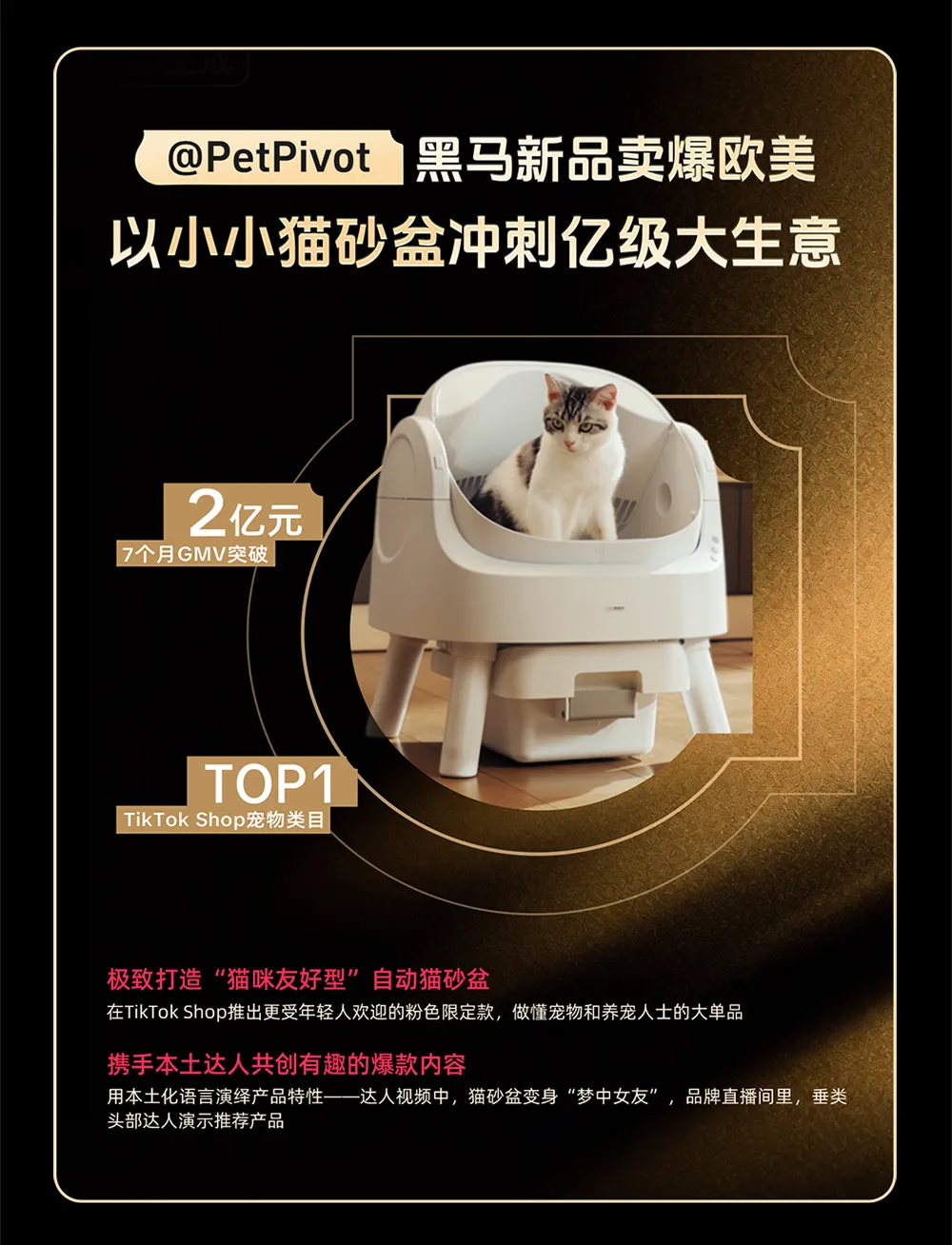 以宠物品牌PetPivot为例,其爆款自动猫砂盆在七个月内创下GMV突破2亿元的惊人成绩,绝非偶然。