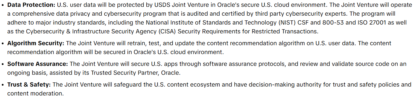· TikTok USDS合资公司负责用户数据与算法安全;