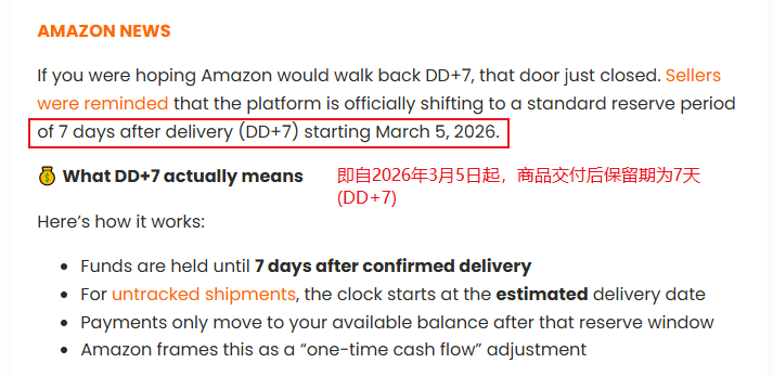 近日,全球电商巨头亚马逊宣布将于2026年3月5日起在全球范围内推行DD+7结算新规,这一变革将显著影响卖家的资金周转。
