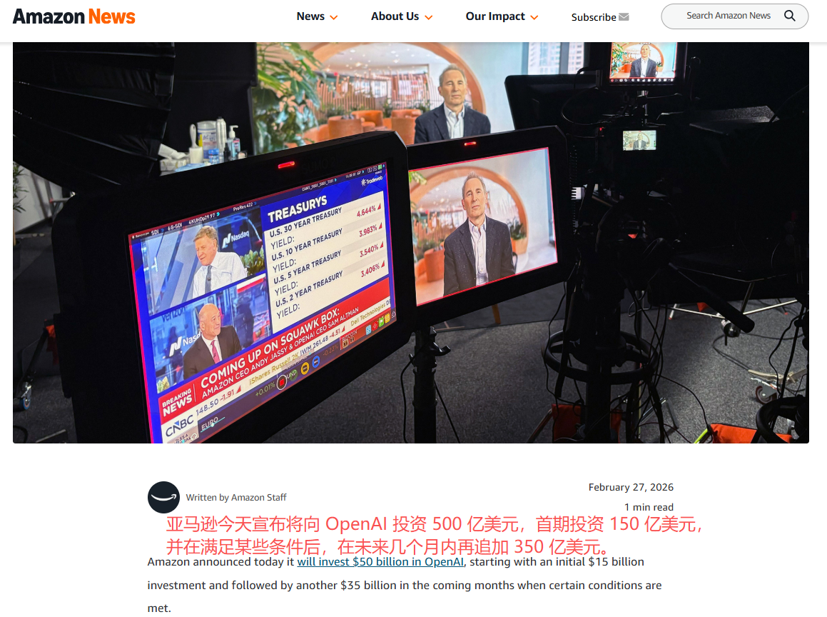AI在跨境电商里早就不是生面孔了,从选品、运营到客服,到处都有它的影子。在这个背景下,电商巨头们的动作更是简单粗暴。上个月,亚马逊扔出一枚重磅炸弹:宣布向OpenAI投资500亿美元,首期到账150亿,后续看情况再加码。