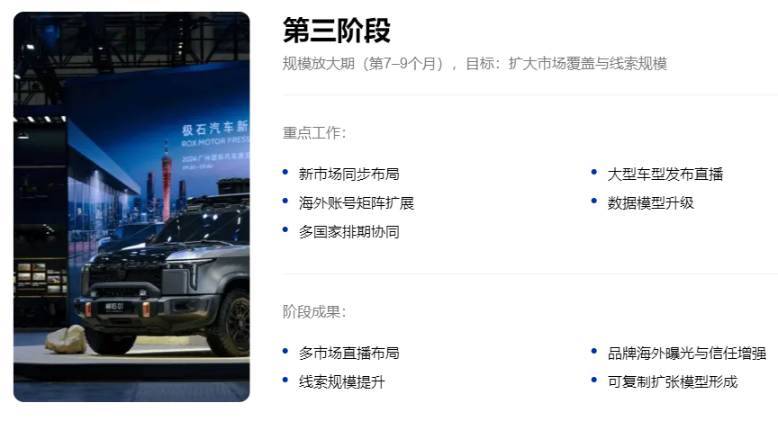 固定直播节奏,多车型轮播测试,形成标准SOP,打通直播和销售的承接体系。这个阶段要的是“稳定产出”。