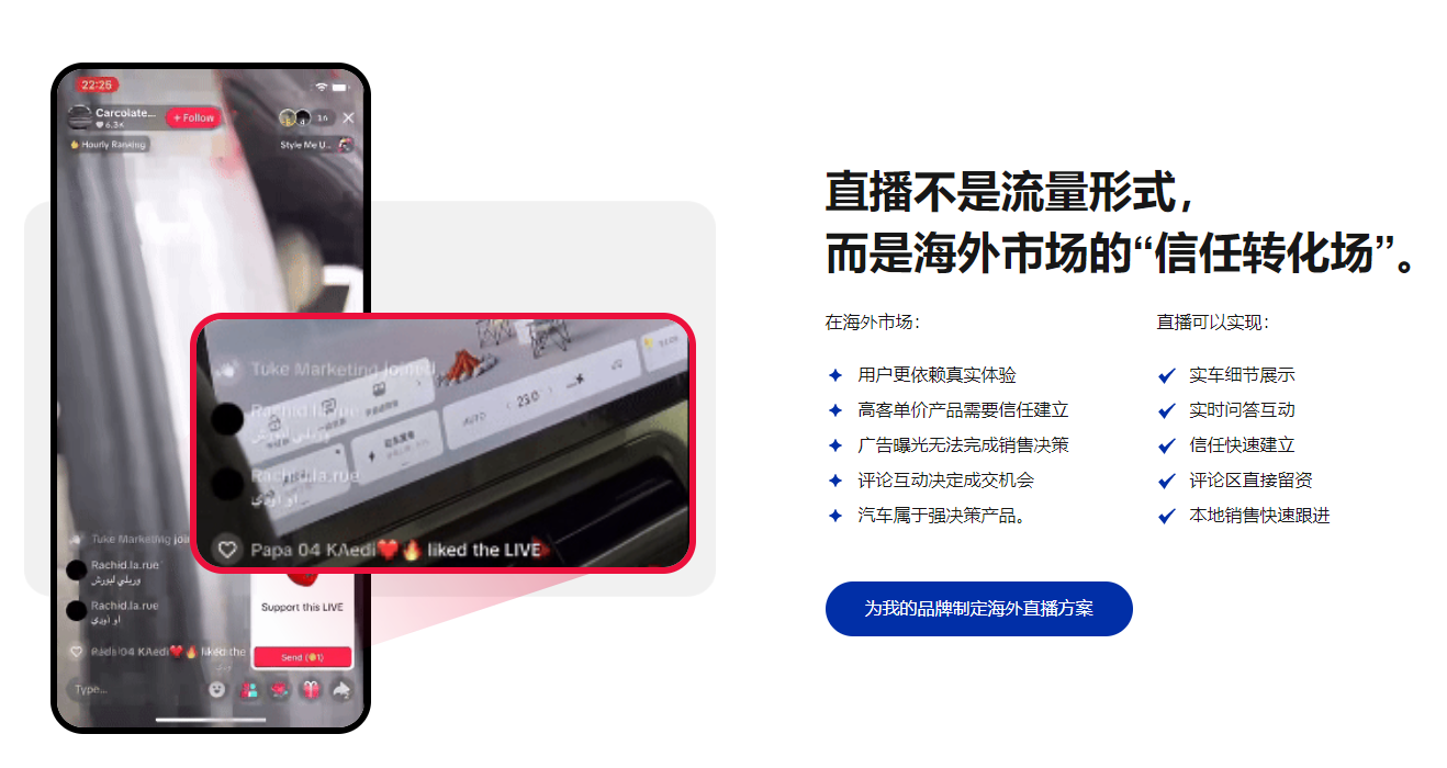 海外用户很现实,广告曝光他们看完就划走了,但直播不一样——你能看到实车,能当场提问,主播能当场回答。一条评论被解答的过程,就是一层信任建立的过程。