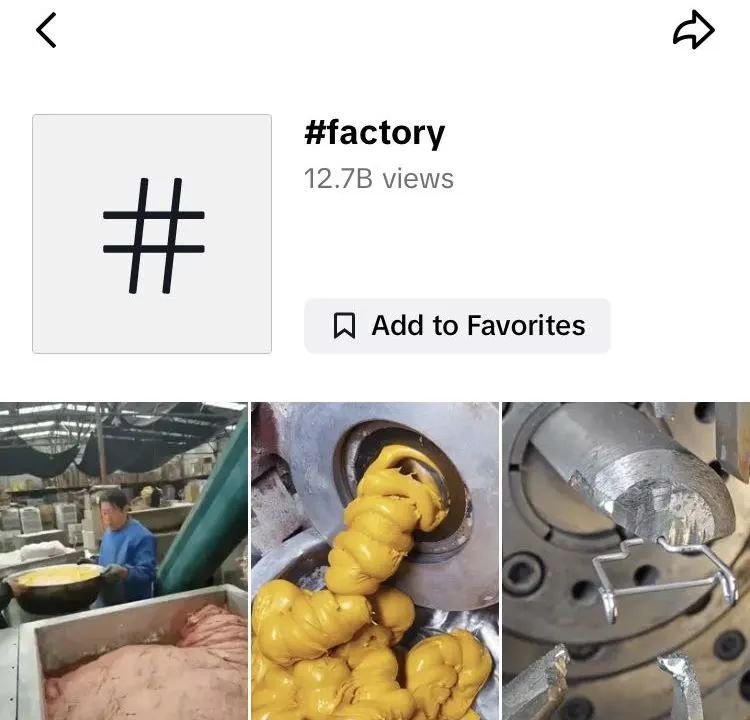 以"工厂#factory"相关的视频为例,TikTok上今年相关话的曝光量已经超过100亿次。