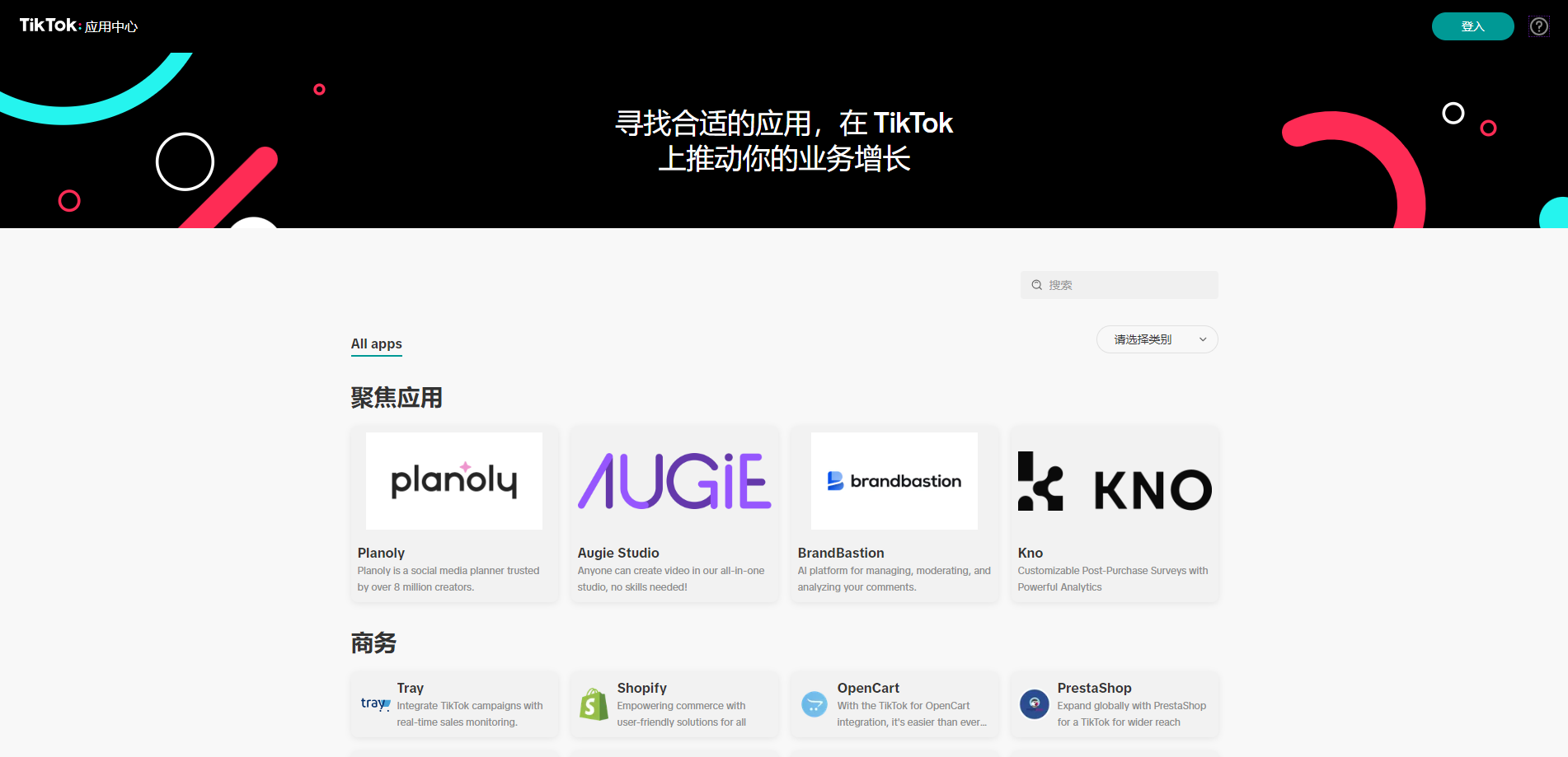 TikTok为了进一步支持企业用户,推出了全新应用中心,汇集了一系列由第三方开发者精心打造的TikTok工具。这些工具旨在帮助小型品牌优化其在TikTok平台上的表现,从内容构思到发布再到效果分析,全程助力商家实现营销目标。